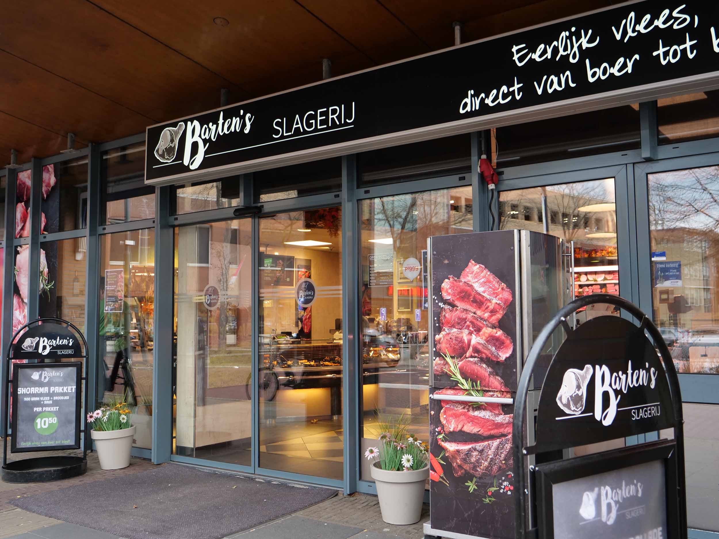 Bij Barten’s slagerij kun je nog terecht voor het Ă©chte vlees van boer tot bord! Het lekkerste rundvlees van onze eigen boerderij, en al het vlees uit eigen slachterij. De vleeswaren en worstsoorten worden in onze worstmakerij gemaakt.