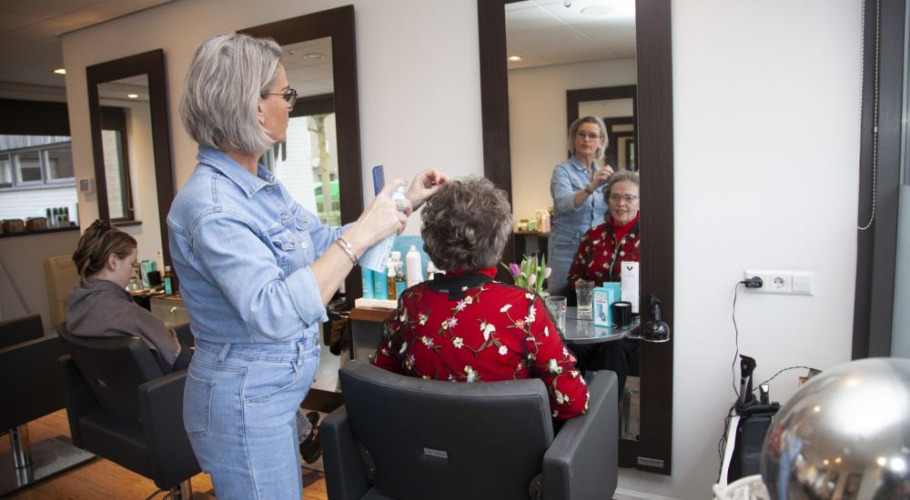 Naast onze professionele knip- en kleurbehandelingen bieden we ook een barbierservice voor heren, waar haar en baard met aandacht worden verzorgd – desgewenst onder het genot van een goede koffie of zelfs een whiskey.